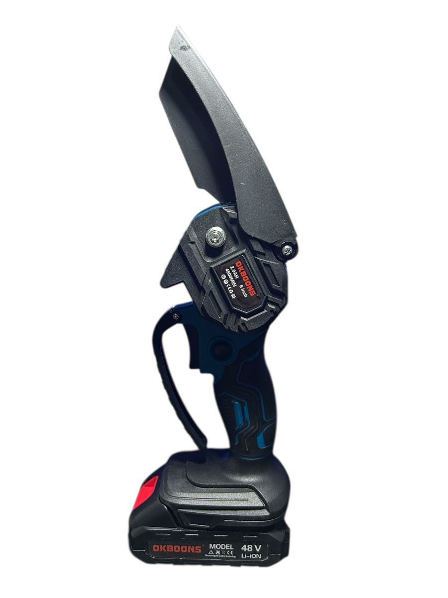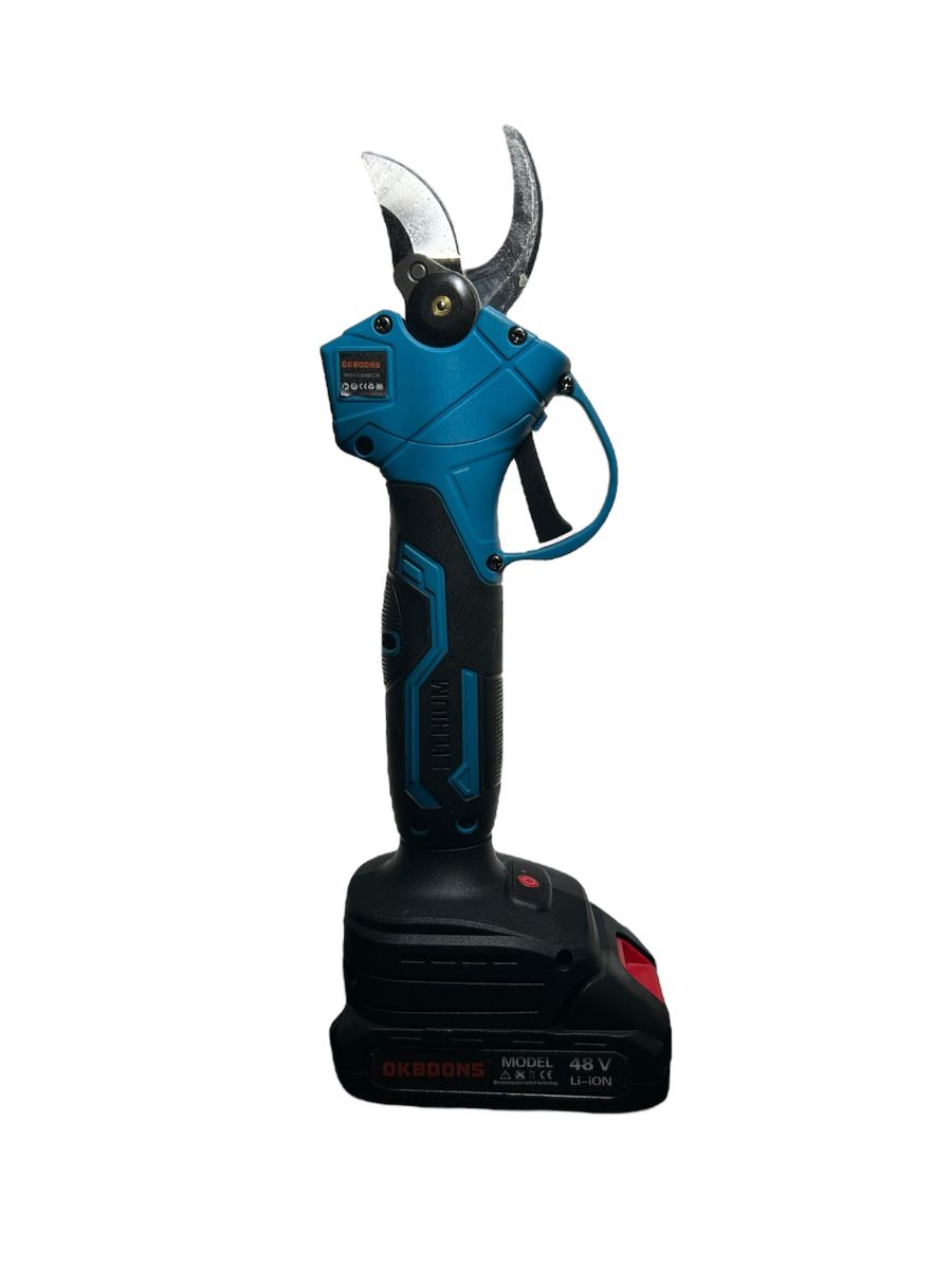 Foarfeca electrică 48V taie rapid și precis ramuri de diferite grosimi, fără efort manual, fiind ideală pentru lucrări de întreținere în grădină.